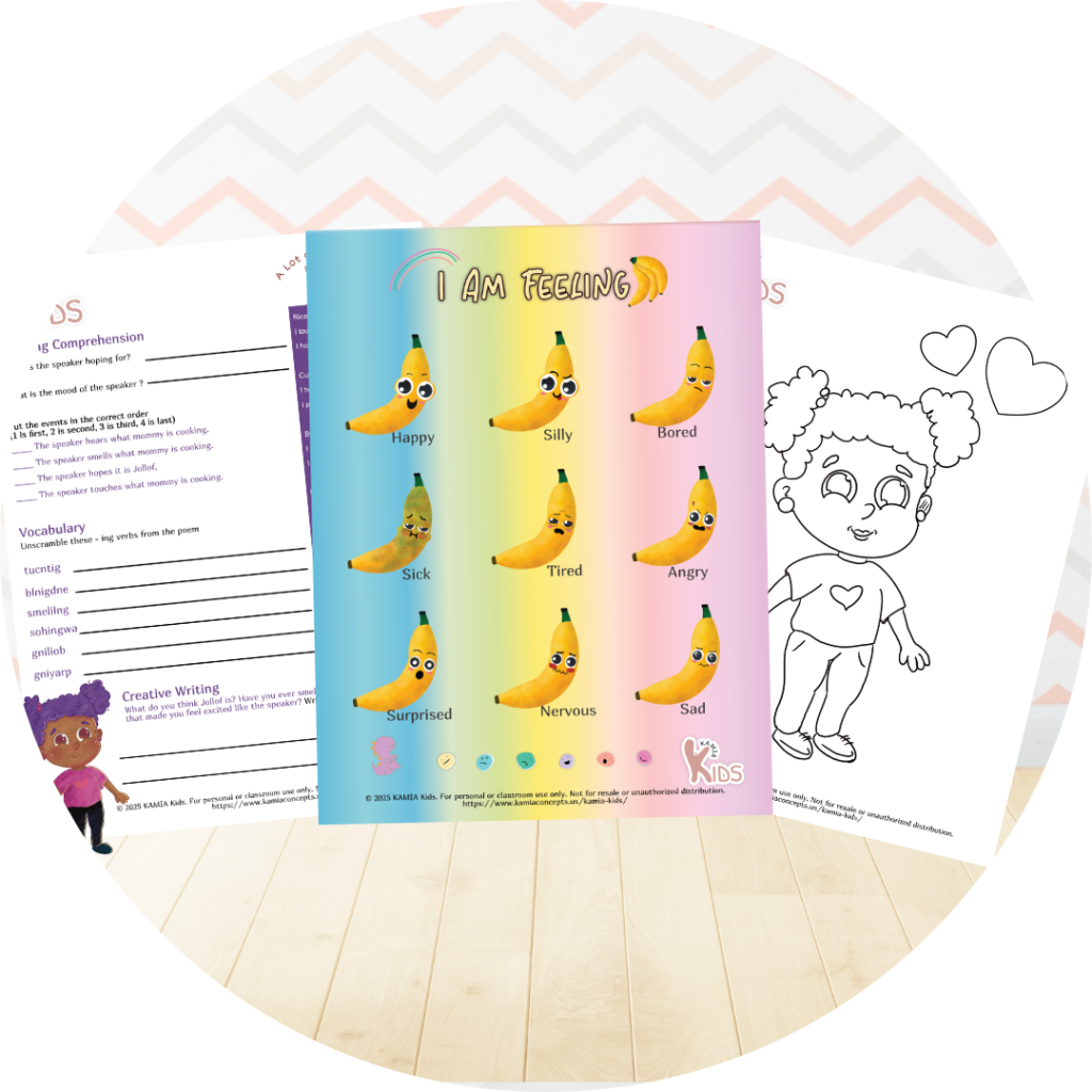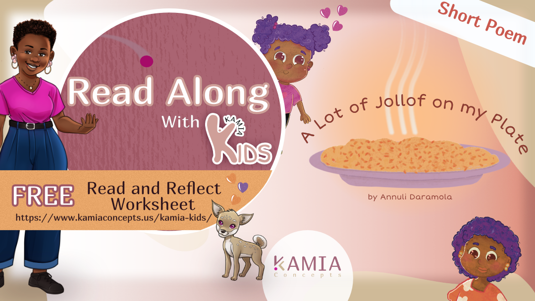 Our Read Along with KAMIA Kids series features original stories like The Cat on a Line and A Lot of Jollof on My Plate, blending fun, culture, and learning. Each episode includes a free parent resource to support learning at home.